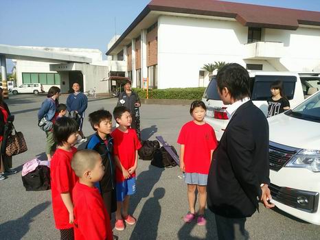一番下の集合写真の左の一番インパクトにある顔をしているのが石橋監督です。